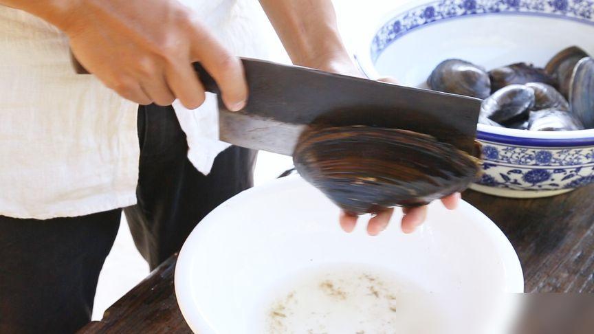 不能将活的河蚌直接处理,不然包里的肉质就会被弄得很难吃,河蚌在开水中被焯后就会自动打开,这时候就能完整的将它的肉和壳分开。